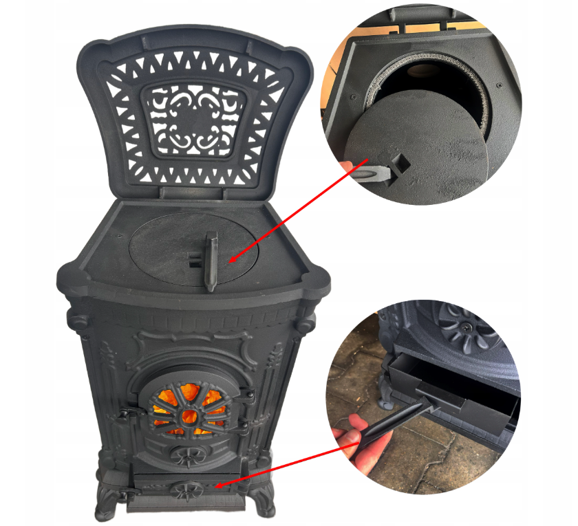 За допомогою цієї печі-каміна ви легко створите опалювальну систему, яка зігріє ваш будинок взимку. Продукт відрізняється простотою та дешевизною експлуатації, адже для його топки використовується звичайне дров’яне паливо. Піч також легко підтримувати в чистоті завдяки інтегрованому попільнику, який полегшує його очищення. Сажу, що утворюється на передньому склі, можна легко видалити вологою ганчіркою. Піч виготовлена з чавуну, який відзначається високою стійкістю до високих температур, що захищає виріб від руйнування під дією вогню.
