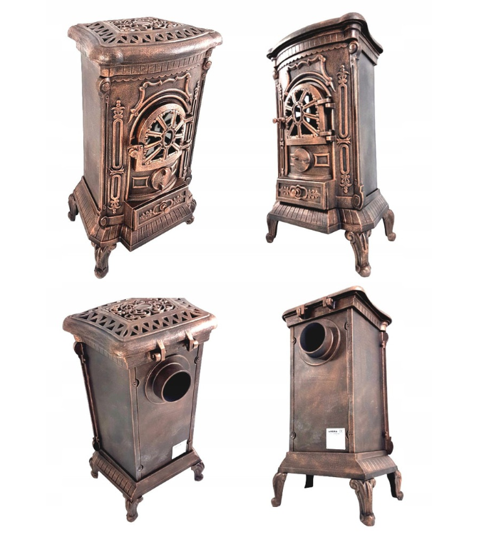 Чавунна піч-камін "Koza" Ingrid Ambra 9 кВт (дрова / буре вугілля) обігрів - до 100 м², Золотисто-мідна