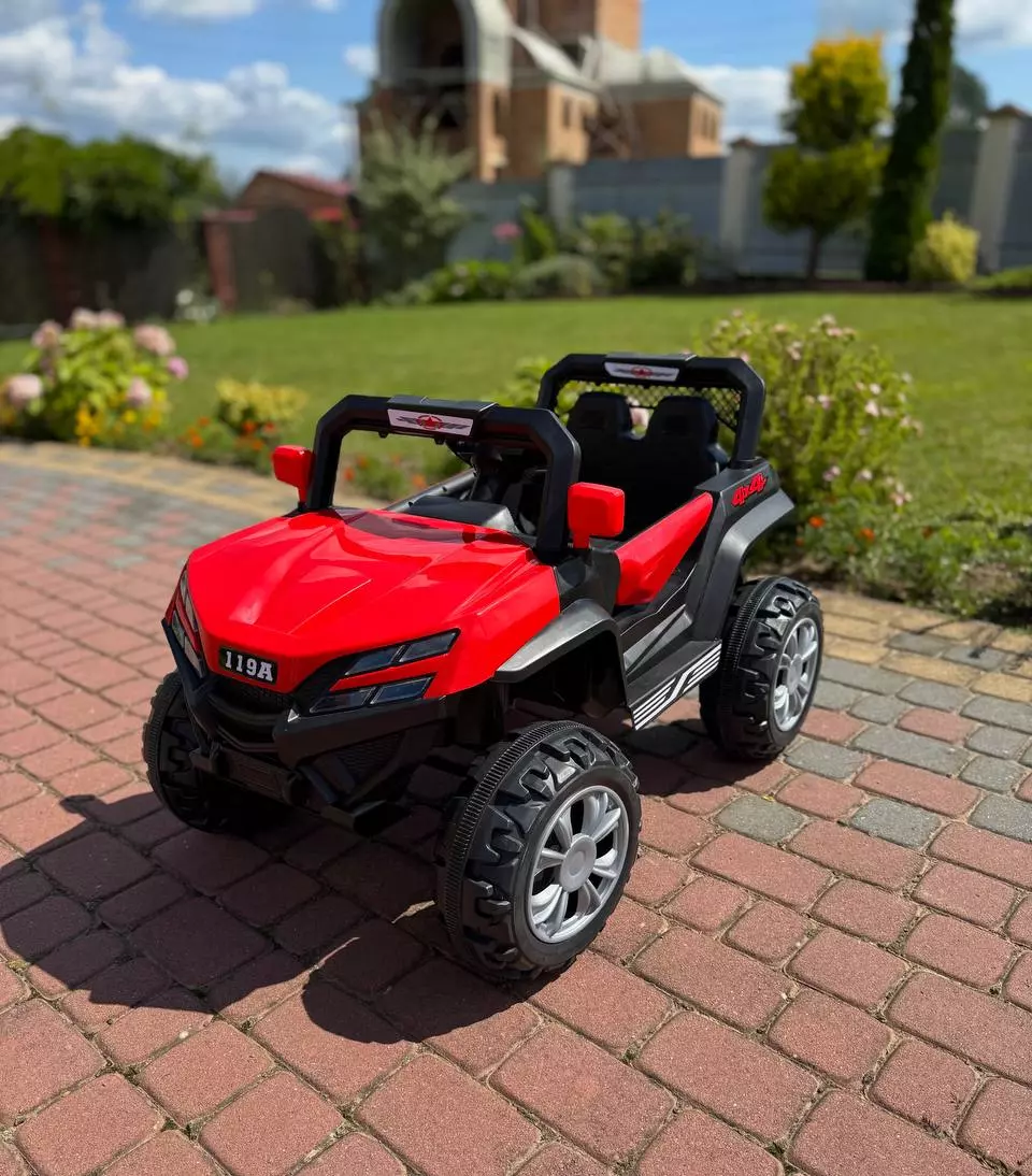 Дитячий електромобіль ДЖИП БАГГІ двомісний (4 двигуни, пульт, світло, музика), Червоний