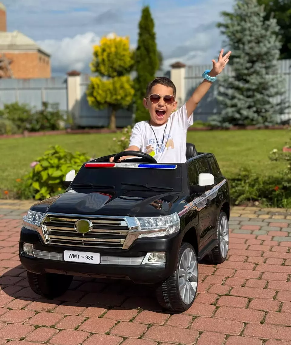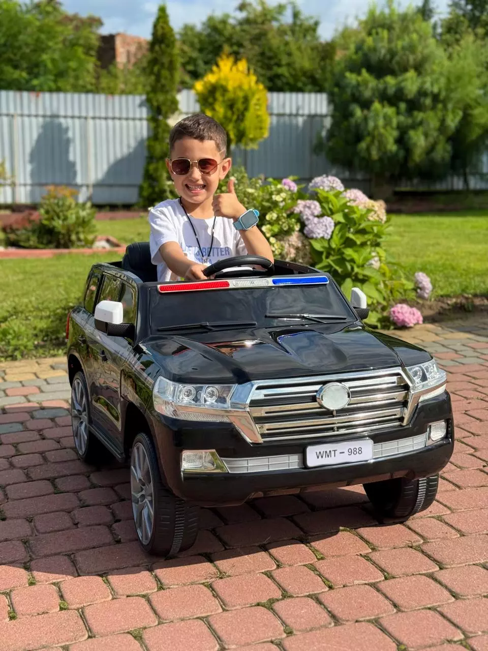 Неймовірний акумуляторний автомобіль — Поліцейський позашляховик — це мрія кожної дитини! Завдяки цій моделі ви зможете здійснити найзаповітніше бажання малюка. Миготливі поліцейські вогні ???? на лобовому склі одразу привернуть увагу друзів. Машинка обладнана двома сидіннями, що дозволяє взяти із собою друга на захоплюючу прогулянку. Вона з легкістю вміщує двох маленьких дітей — ідеальний варіант для спільних пригод.