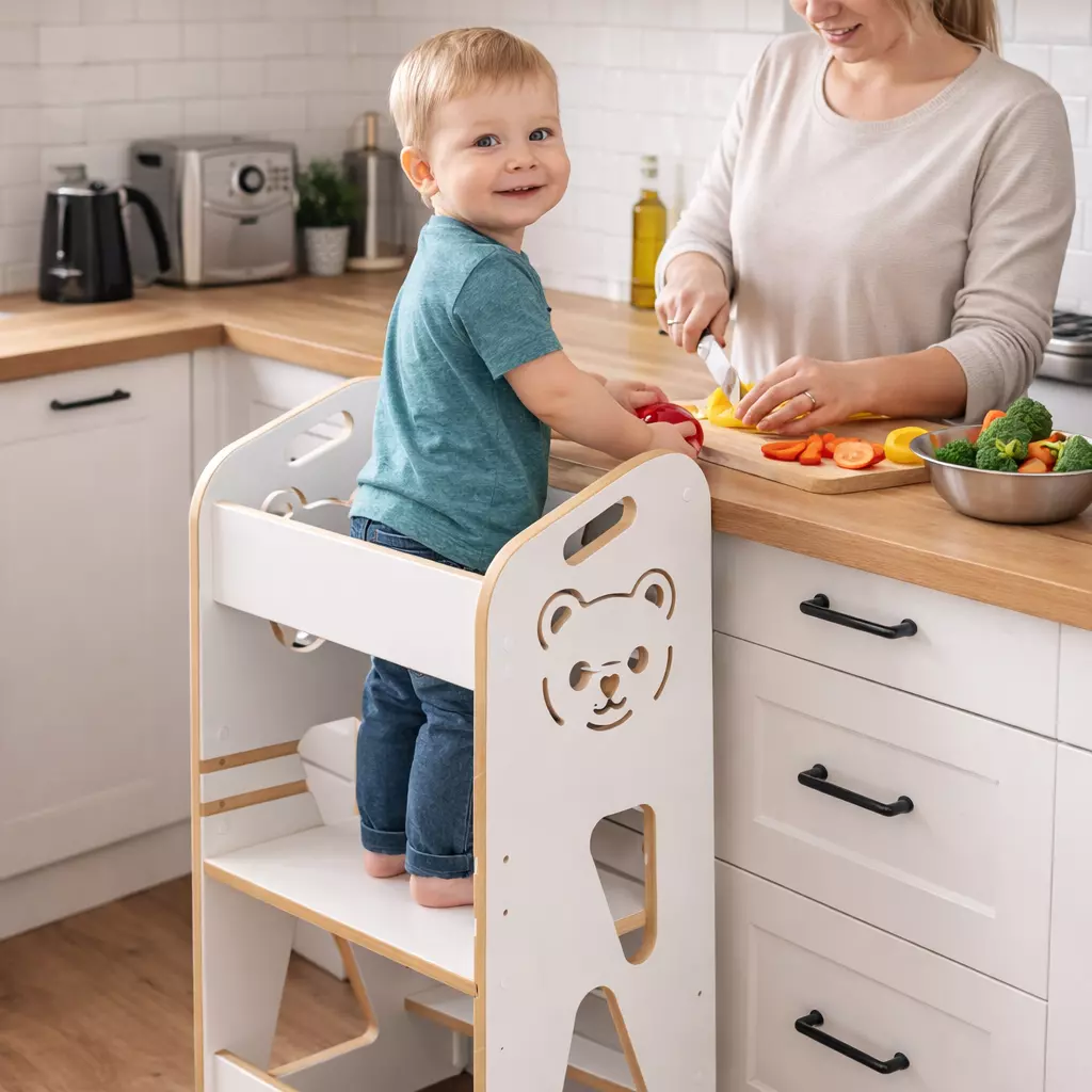 Кухонний помічник — це інвестиція в розвиток вашої дитини. Завдяки йому малюк може безпечно брати участь у щоденних кухонних заняттях, одночасно навчаючись і розважаючись. Обирайте якість, безпеку та функціональність.