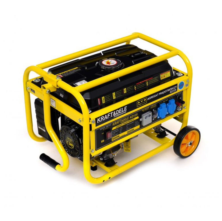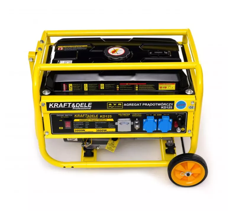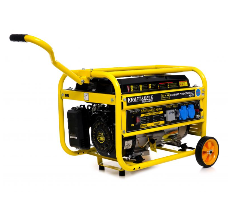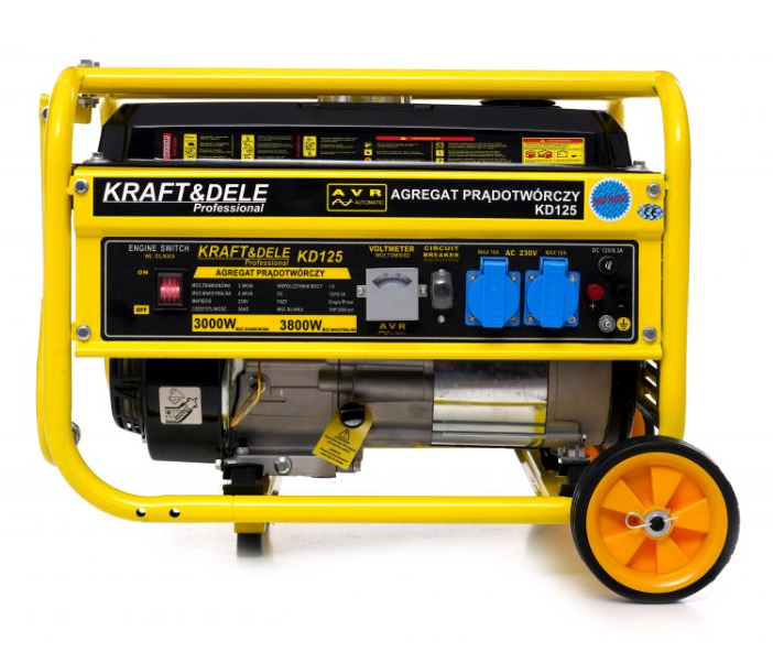 Генератор бензиновий 3,8 кВт Kraft&Dele KD125 12/230В з колесами, однофазний, 4-тактний, ручний запуск, бак 15 л (Польща)
