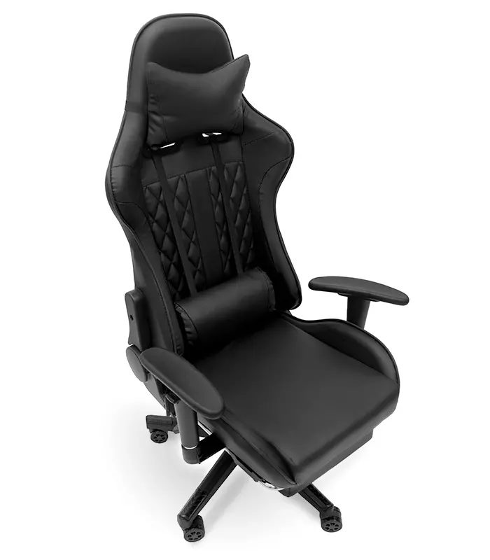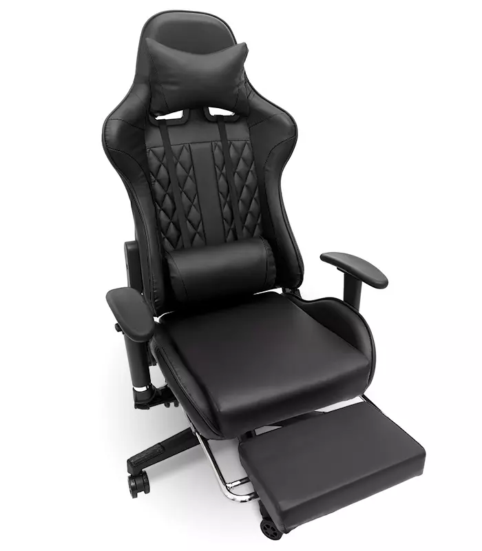 Геймерське комп'ютерне крісло з масажером, ергономічними подушками та підніжкою для ніг, Чорний (G901)