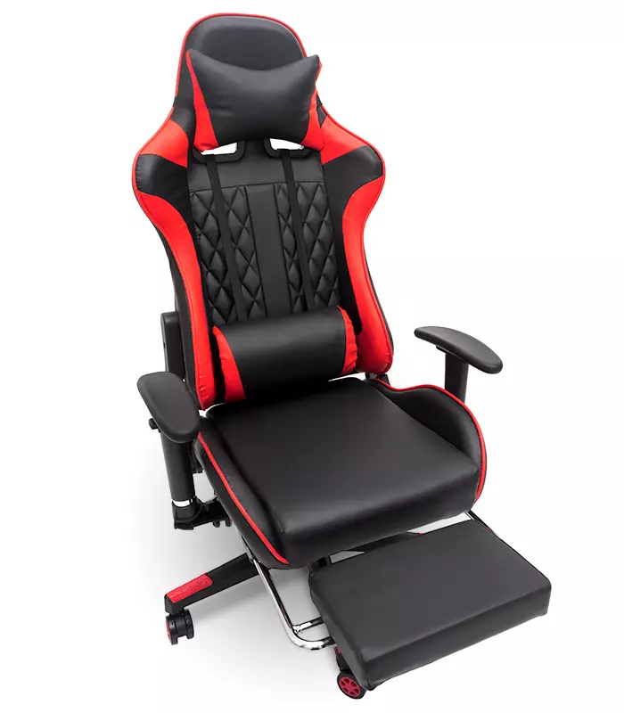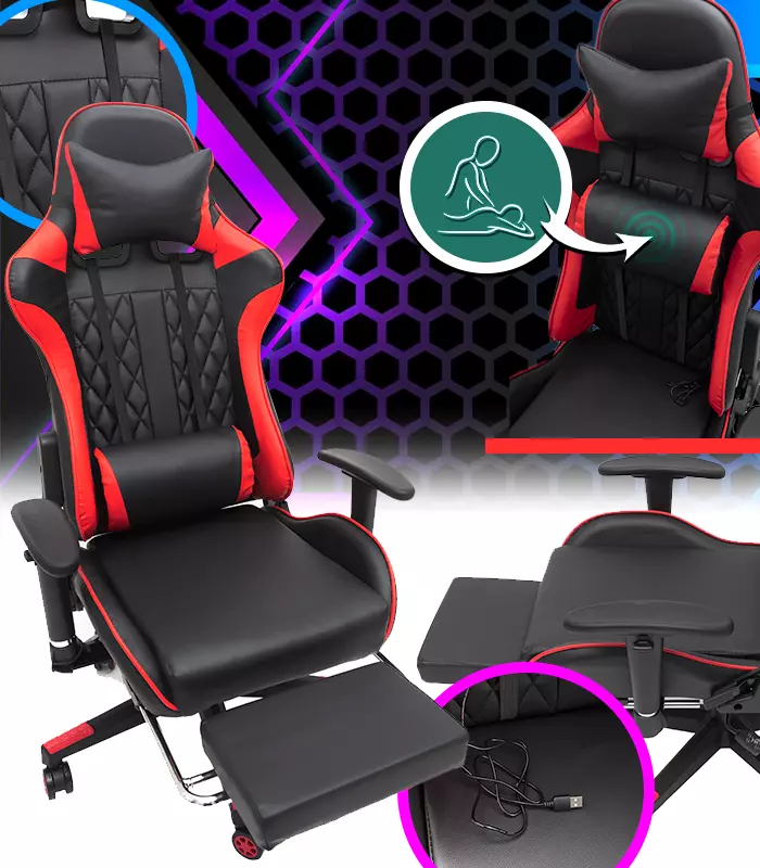Геймерське комп'ютерне крісло з масажером, ергономічними подушками та підставкою для ніг, Чорний/Червоний (G899)