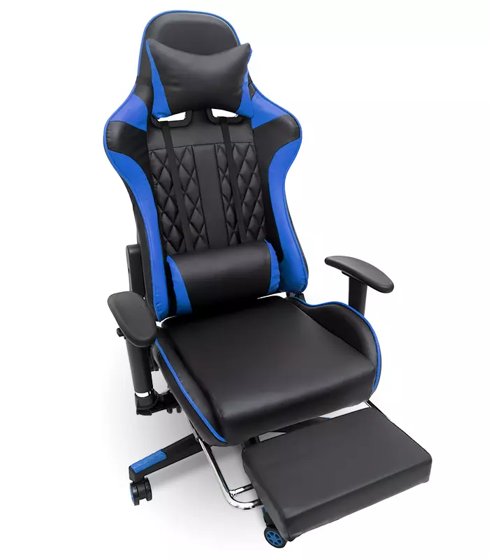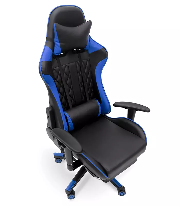 Геймерське комп'ютерне крісло з масажером, ергономічними подушками та підставкою для ніг, Чорний/Синій (G900)