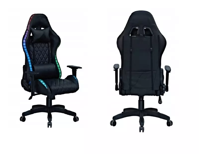 Геймерське комп'ютерне крісло з RGB-підсвічуванням, 2 ергономічними подушками та регулюванням кута нахилу спинки, Чорний (G400)