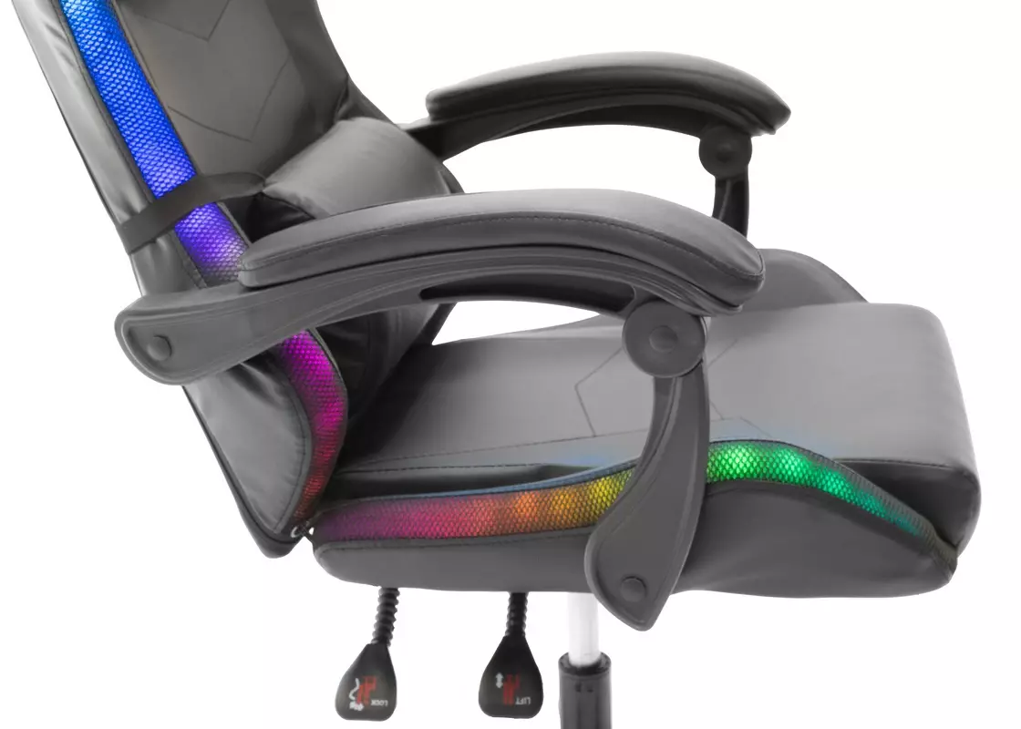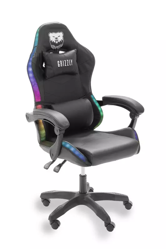 Геймерське крісло Grizzly з RGB LED підсвіткою (12 режимів), Чорний