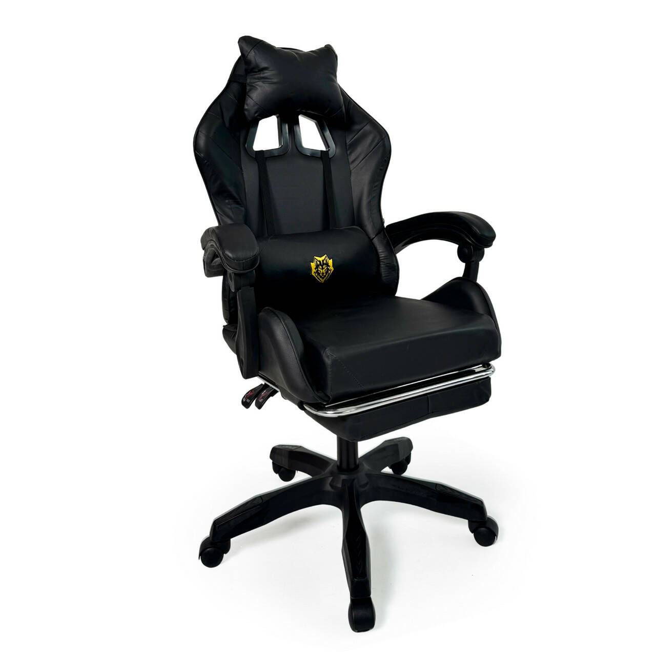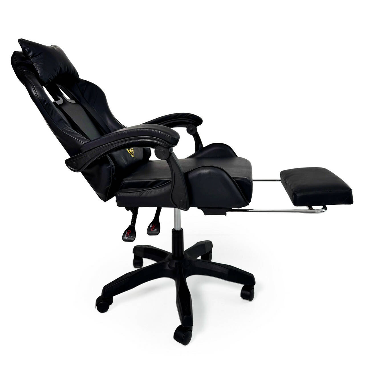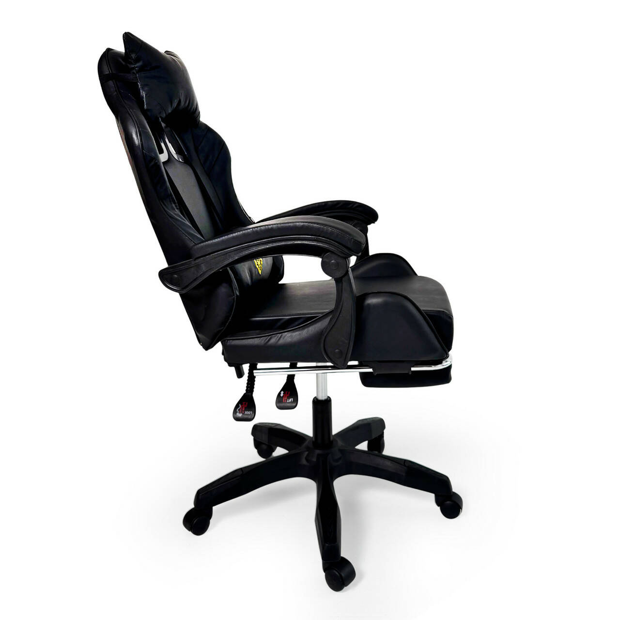 Геймерське крісло Primaveo з ергономічними подушками та висувною підставкою для ніг, Чорний