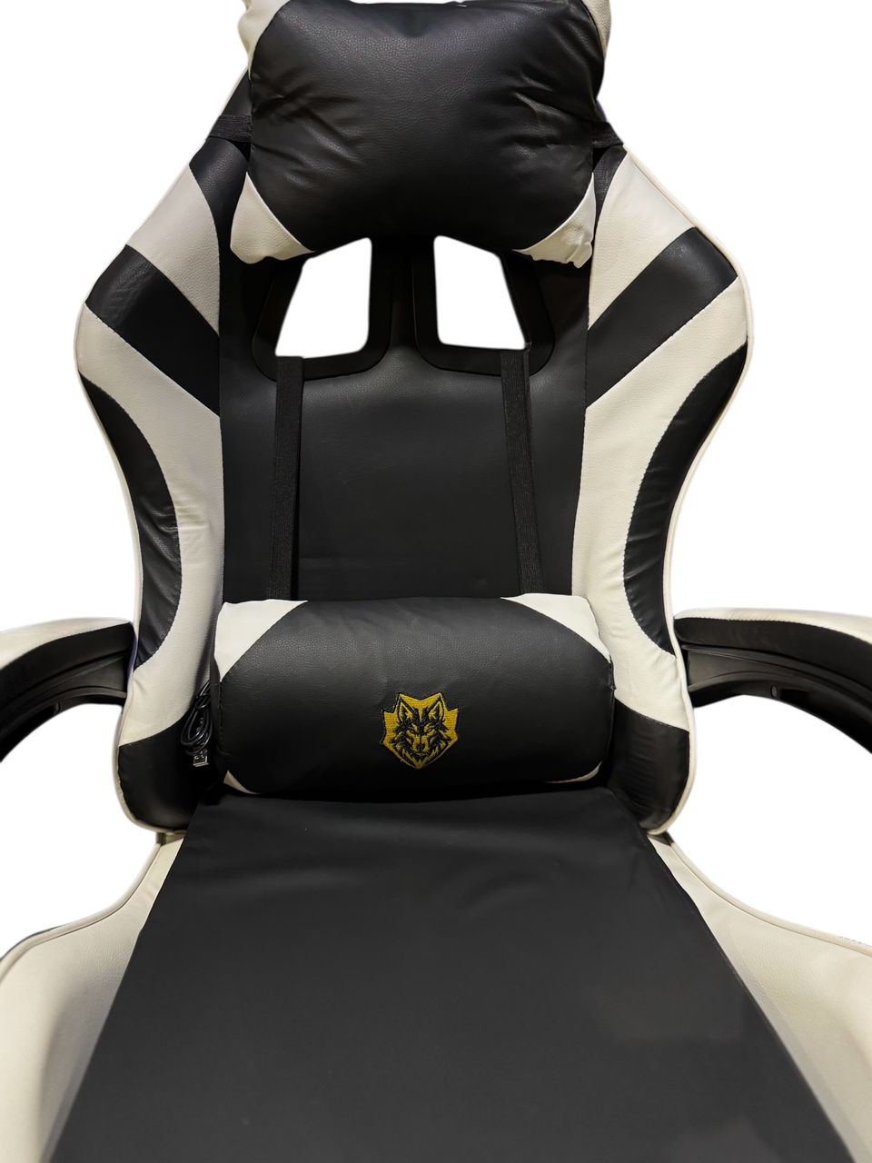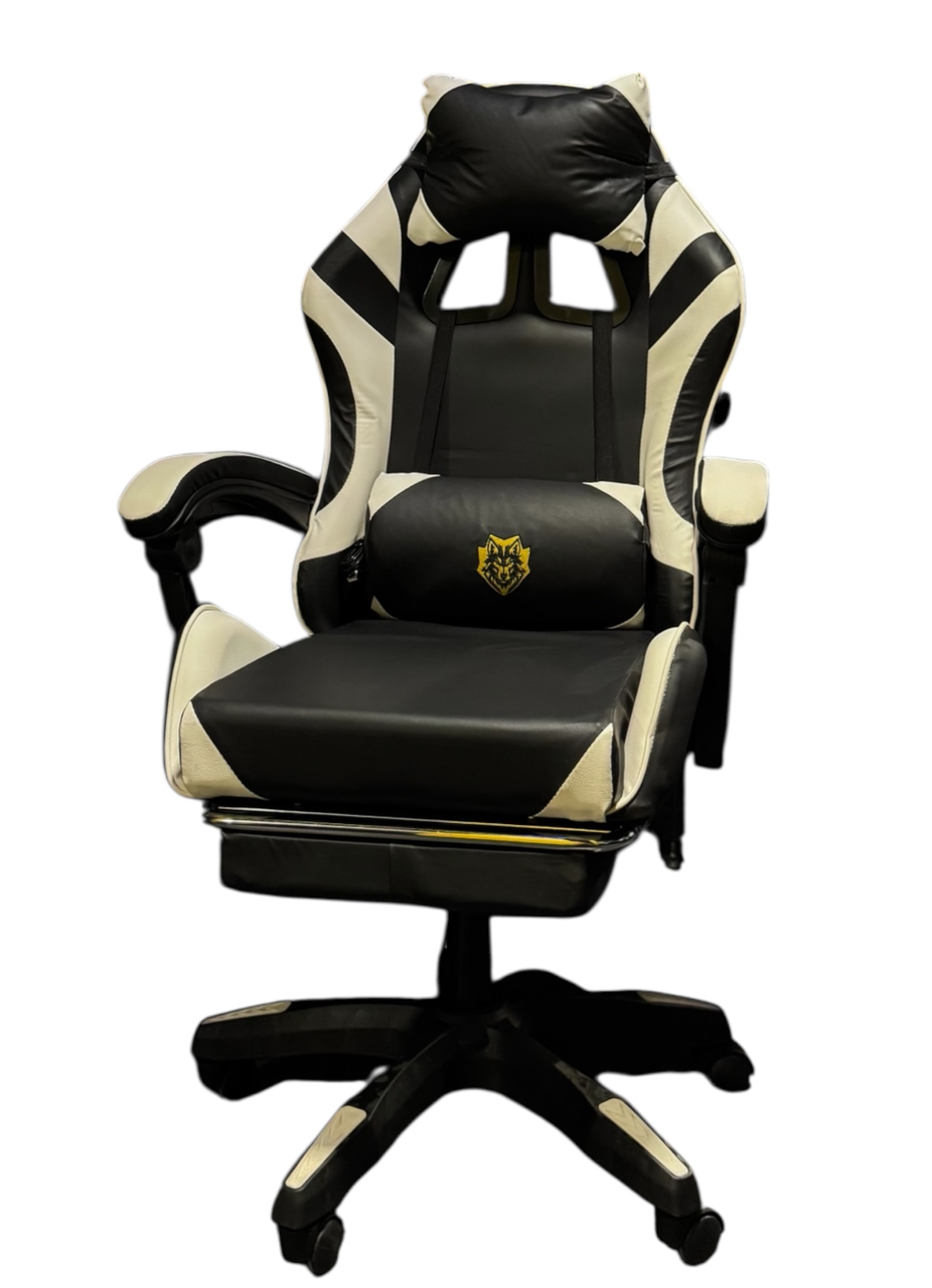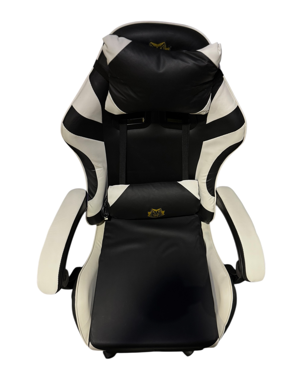 Геймерське крісло Primaveo з ергономічними подушками та висувною підставкою для ніг, Чорний/Білий