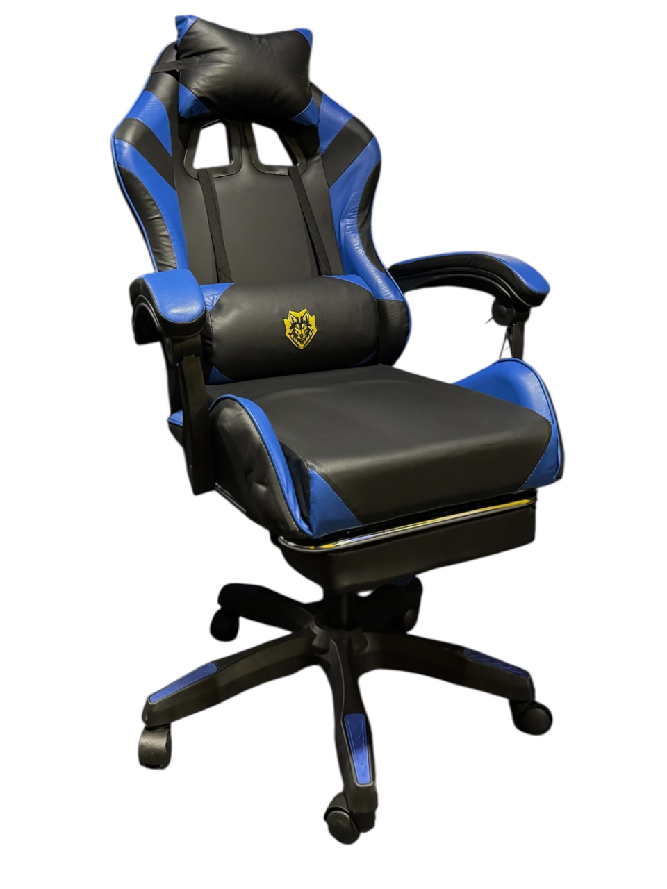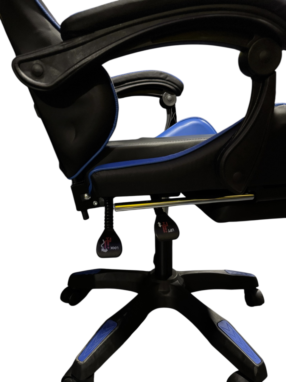Геймерське крісло Primaveo з ергономічними подушками та висувною підставкою для ніг, Чорний/Синій