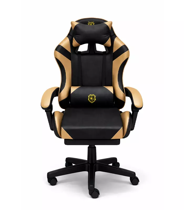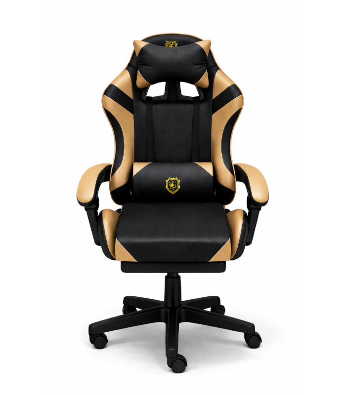 Геймерське крісло Primaveo з ергономічними подушками та висувною підставкою для ніг, Чорний/Золотий
