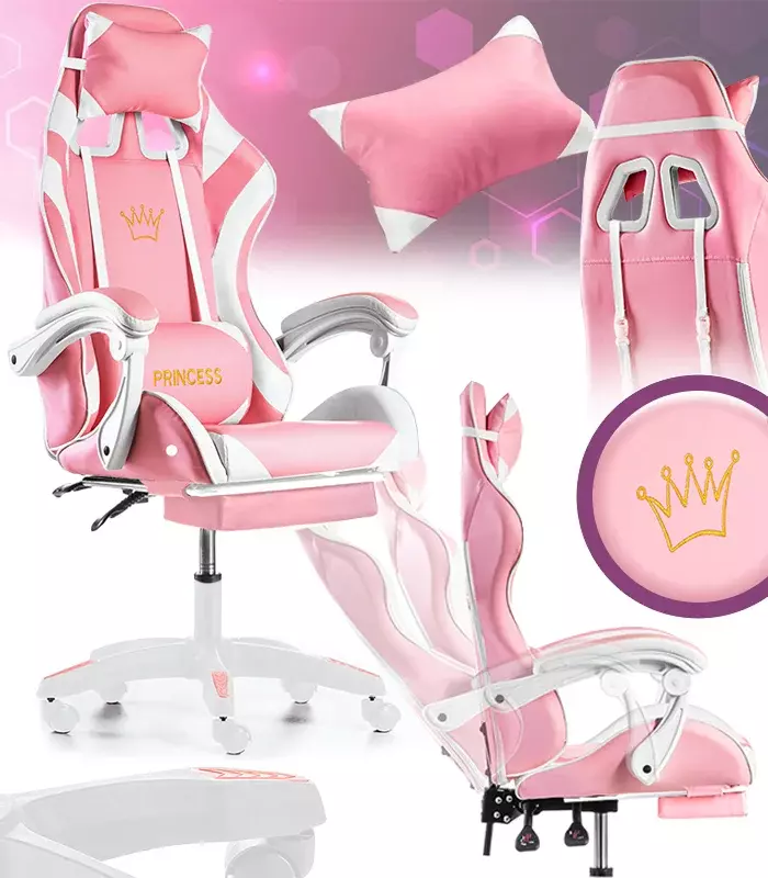 Крісло геймерське G846 рожеве з підставкою для ніг