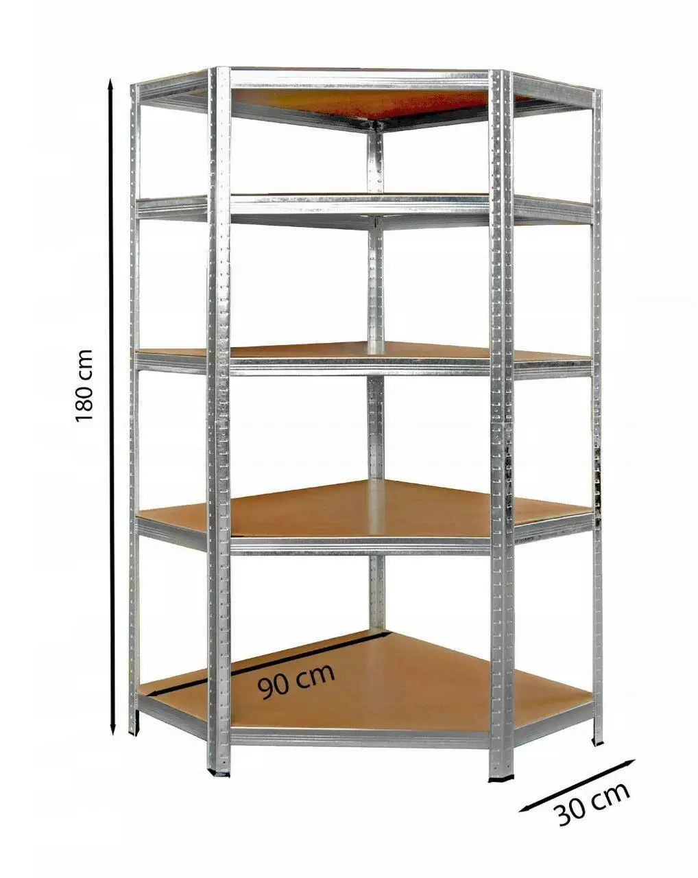 Металевий кутовий стелаж 180x30x90 5 полиць (сірий)