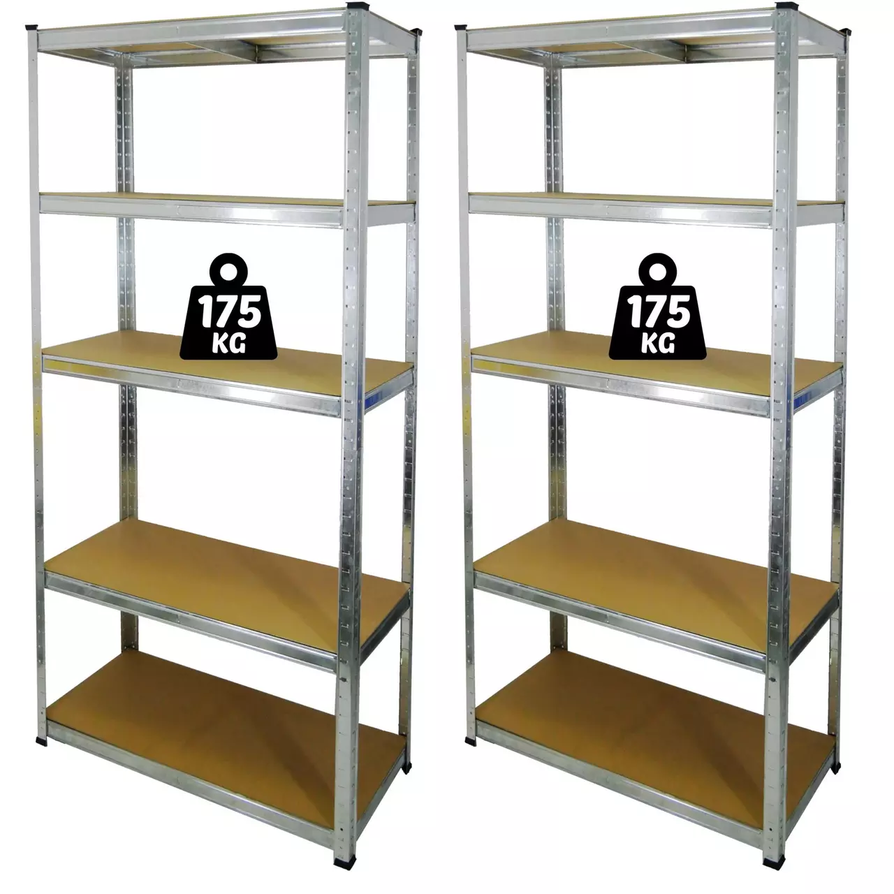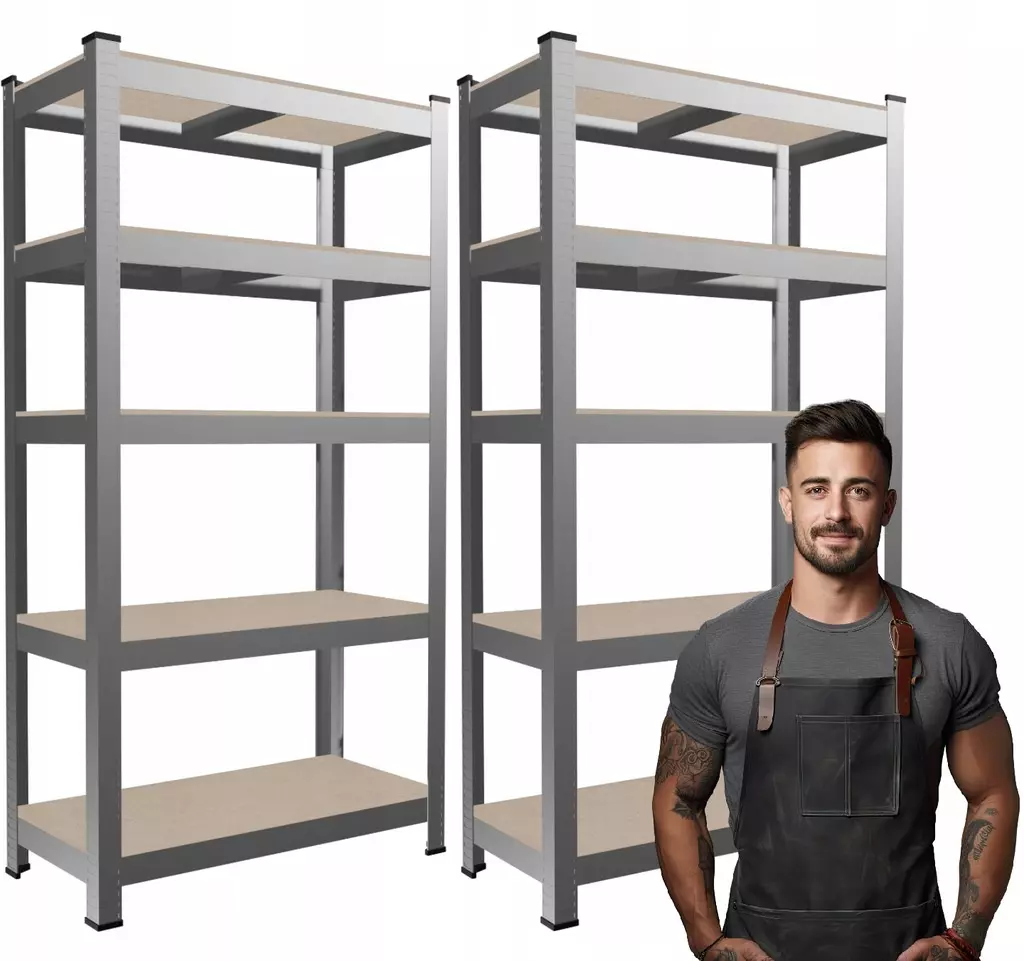 Набір із двох п’ятирівневих стелажів — це практичне рішення для організації простору. Виготовлені з металевих гальванізованих профілів та полиць із плит МДФ, вони забезпечують високу міцність і довговічність. Додаткові ребра жорсткості під кожною полицею зміцнюють конструкцію, а максимальне навантаження до 175 кг на полицю та до 875 кг на весь стелаж гарантує надійність у використанні. Завдяки простому монтажу стелажі швидко готові до використання.