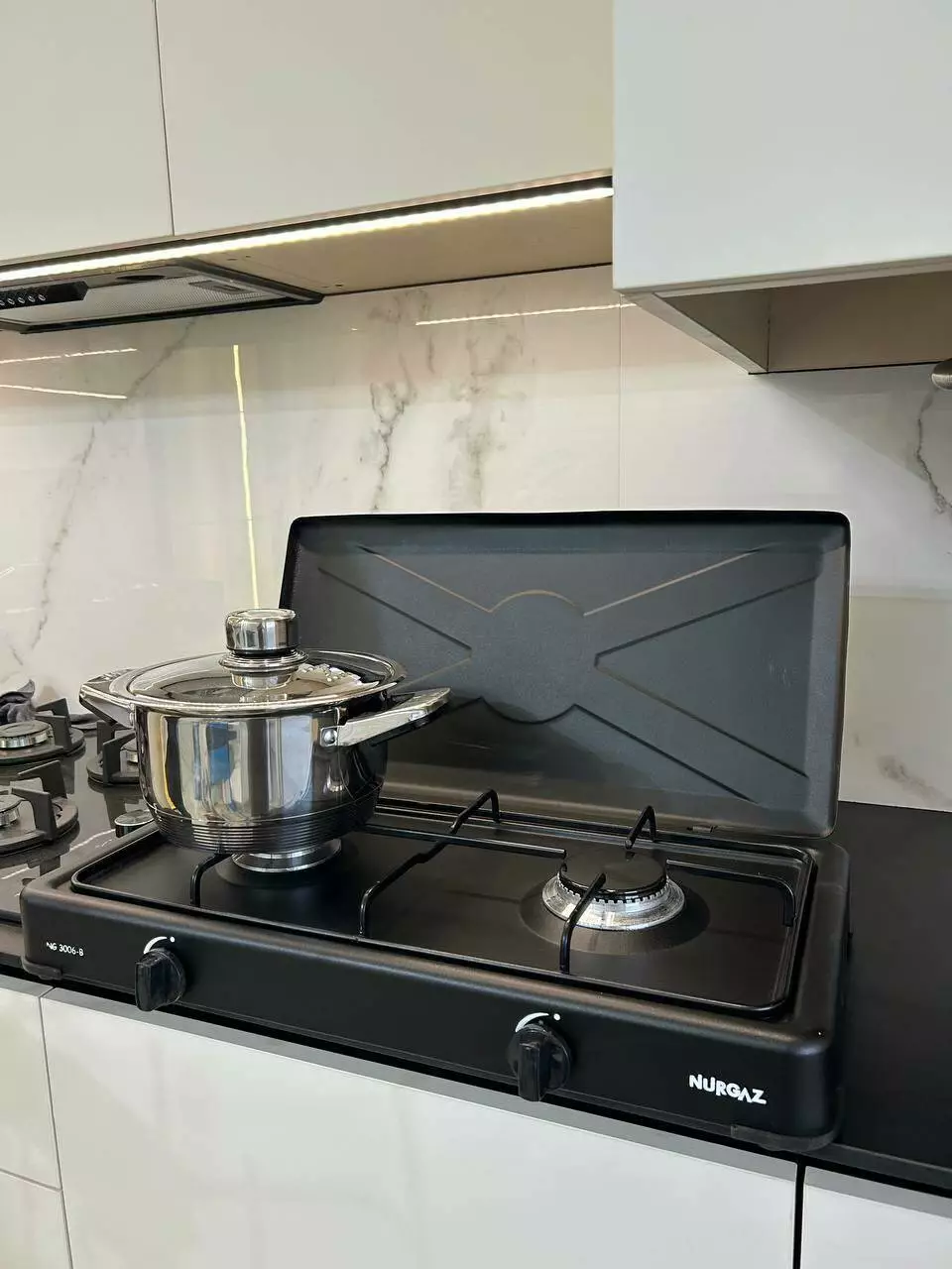 Настільна газова плита Nurgaz на 3 конфорки з кришкою (Турція)
