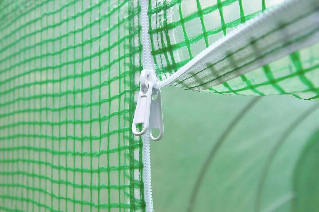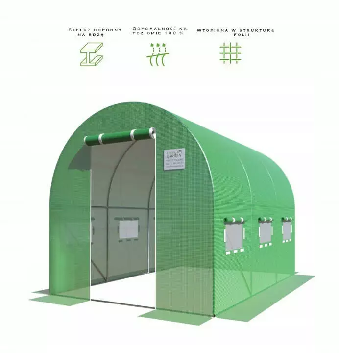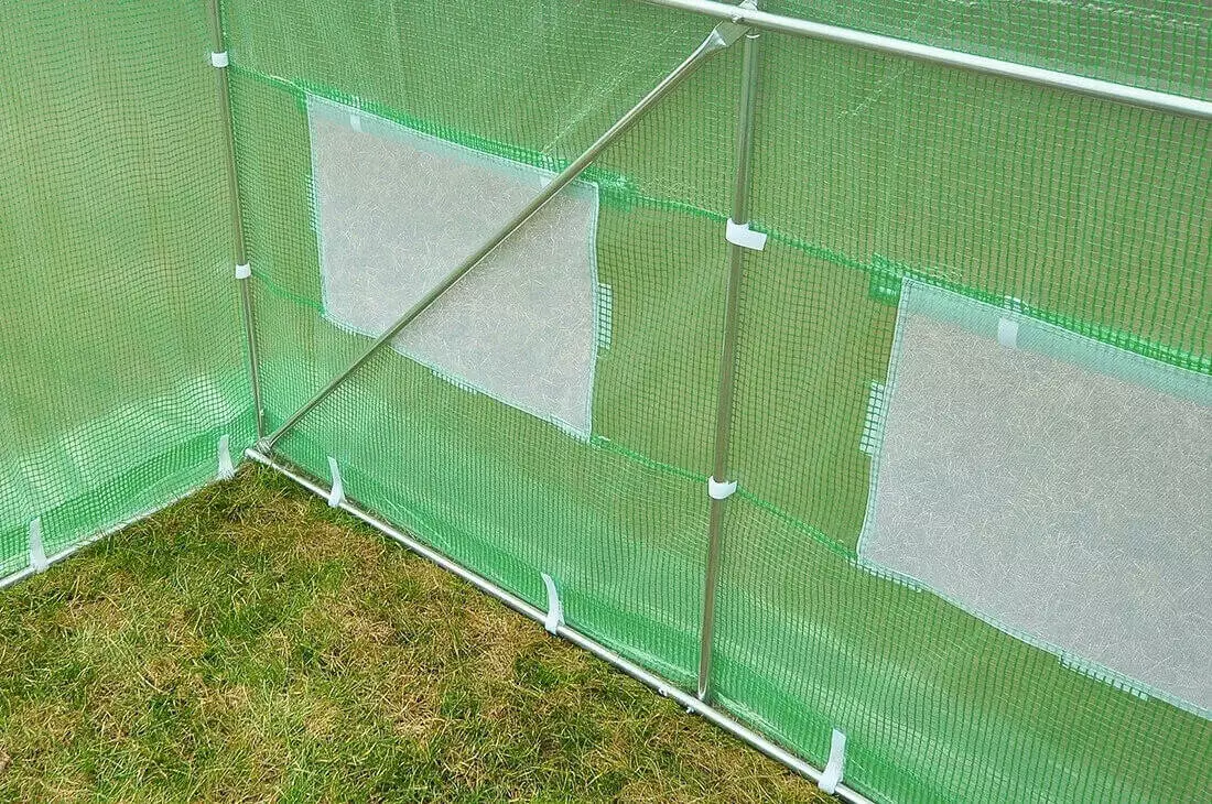 Теплиця розміром 10м² забезпечить ідеальні умови для розвитку рослин: захистить їх від несприятливого впливу погоди, прискорить і підвищить ефективність посівів, а також продовжить сезон. Дозволяє регулювати температуру, вологість і циркуляцію повітря, щоб створити правильний мікроклімат для ваших рослин. Завдяки розмірам дозволяє вільно пересуватися і працювати. Широкі рулонні двері з засувками підвищують функціональність теплиці. Усередині є дві поперечини, встановлені у верхній частині рами, які забезпечать стійкість, а також дозволять підв'язати мотузки для витких рослин. Матеріали, використані при будівництві, відрізняються високою якістю.