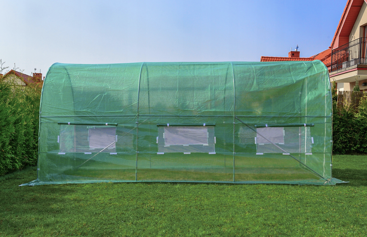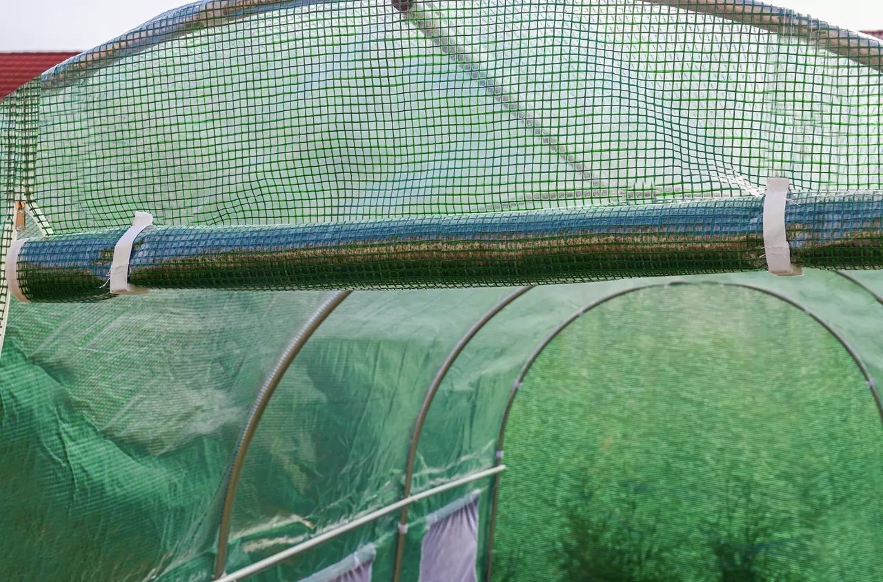Спеціальна подвійна прозора поліетиленова плівка 140 г/м з фільтром УФ-4 із зеленою армуючою сіткою, вбудованою в структуру плівки, забезпечує оптимальну кількість світла для ваших культур.