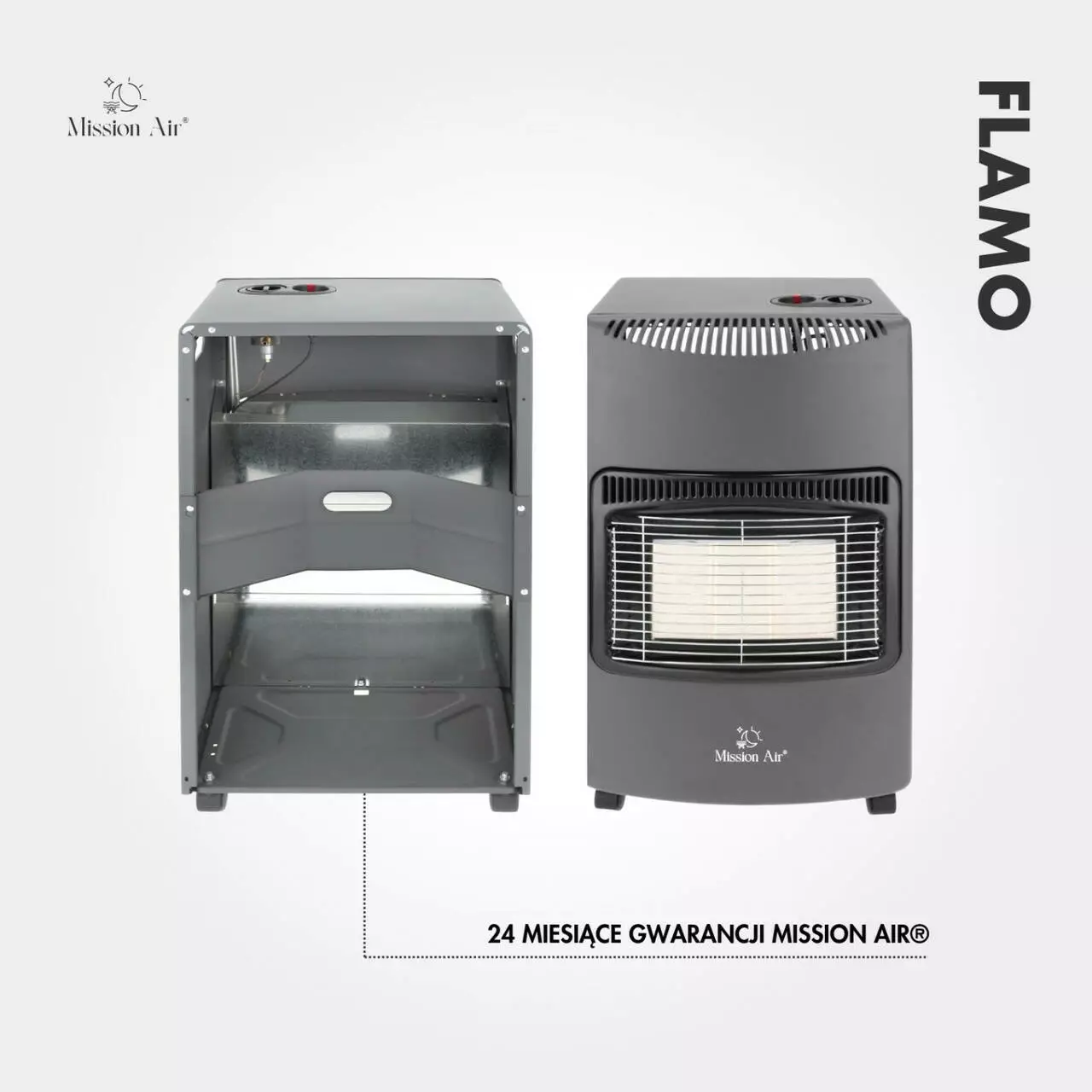 Mission Air FLAMO — це мобільний газовий обігрівач, який забезпечує інтенсивне та швидке тепло там, де відсутнє стаціонарне опалення. Завдяки трьом рівням потужності та ефективному керамічному пальнику приміщення прогріваються за лічені хвилини. Пристрій працює тихо та природно, без вентилятора й повітряних потоків, створюючи комфортні умови для роботи чи відпочинку.