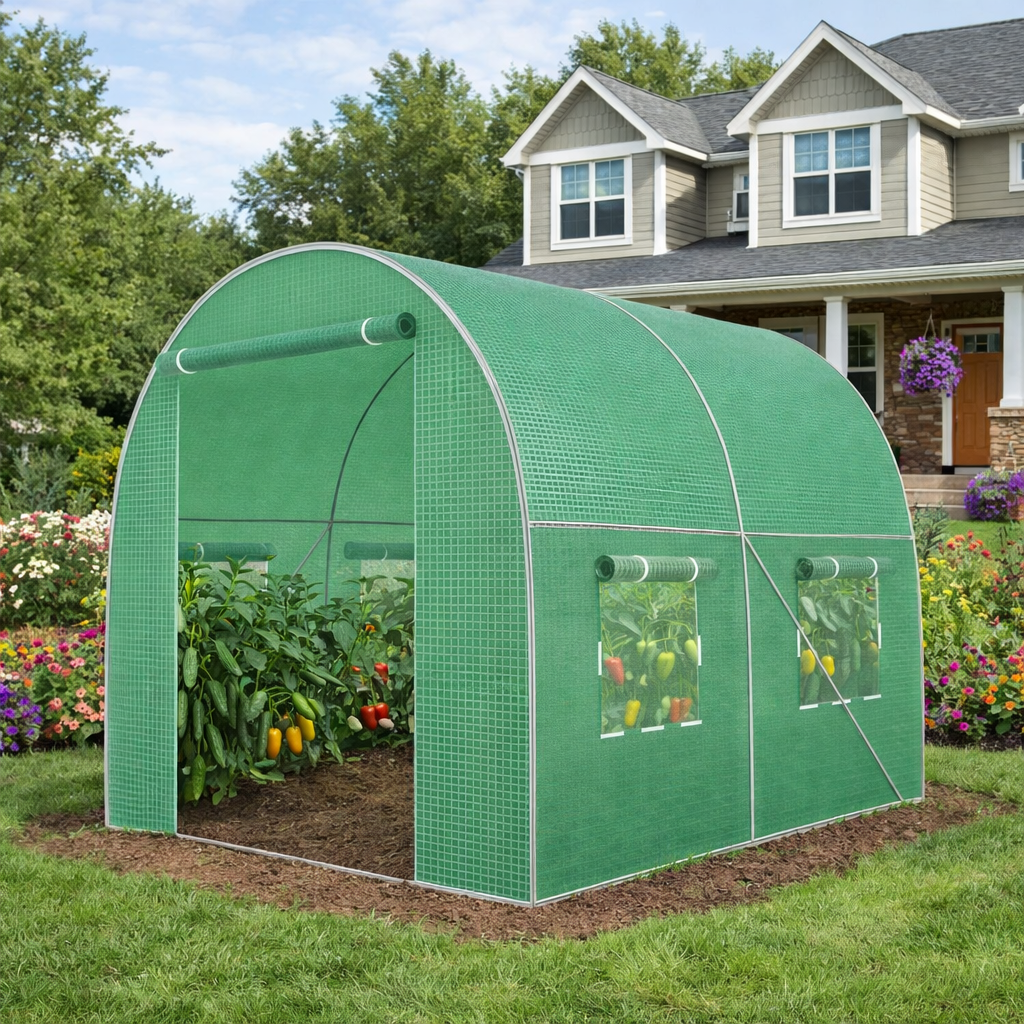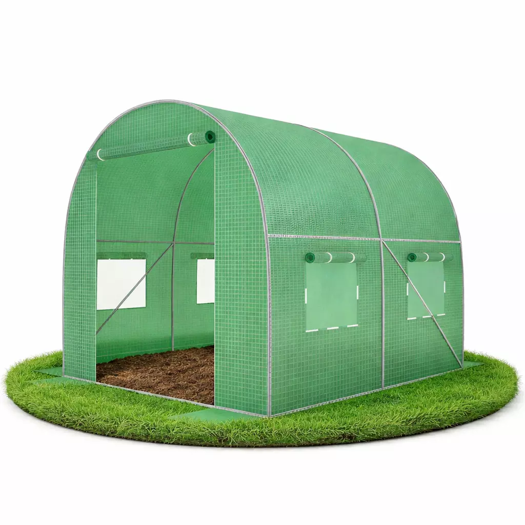 Садова теплиця 4 м² (2 × 2 × 2 м) з вікнами, армована плівка UV-4, Зелена (Польща)