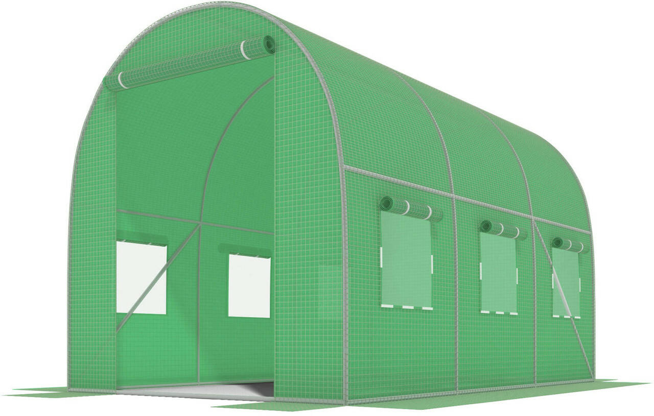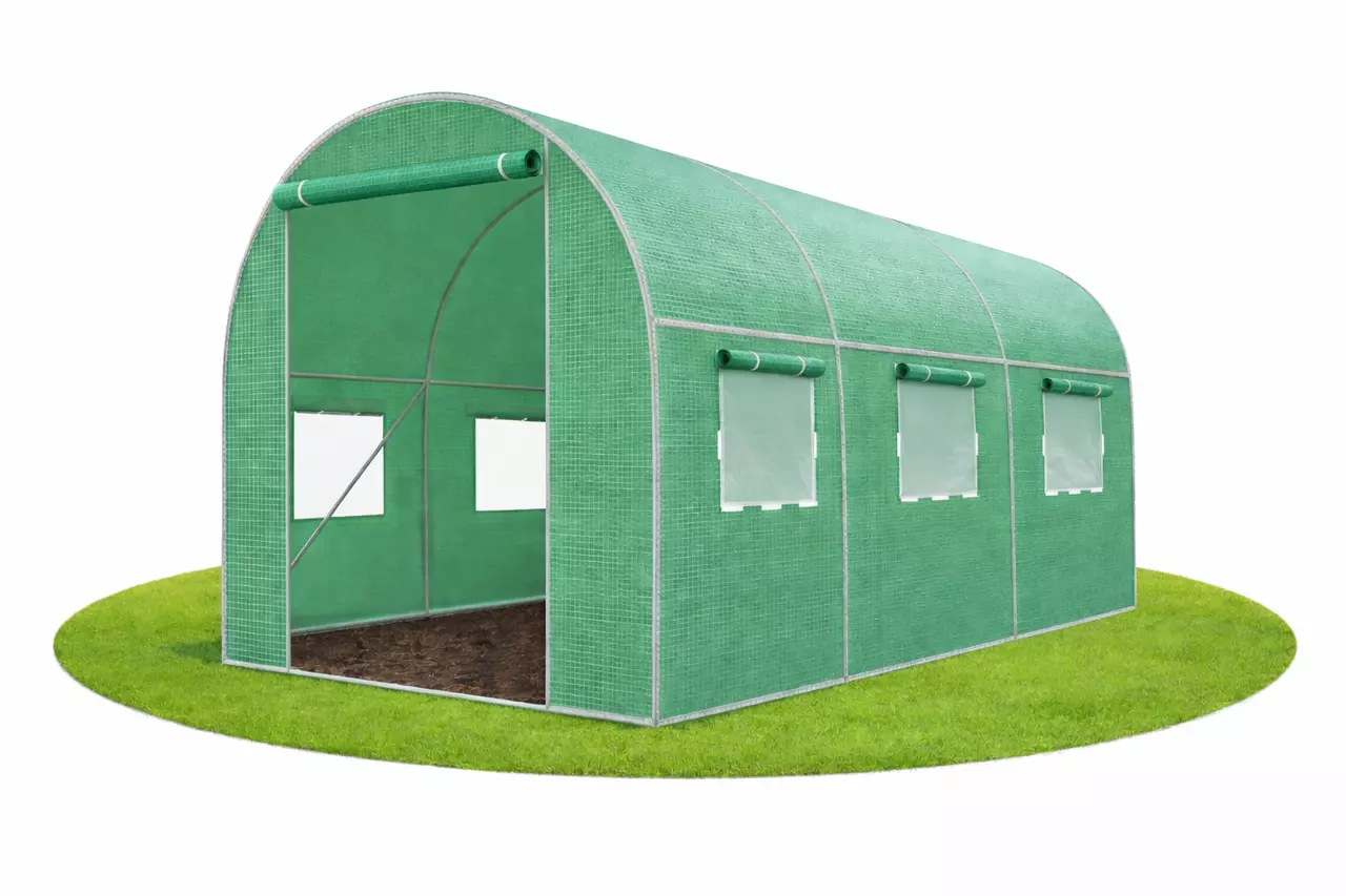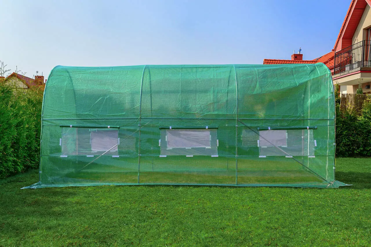 Садова теплиця 7 м² (3,5 × 2 × 2 м) з вікнами, армована плівка UV-4, Зелена (Польща)