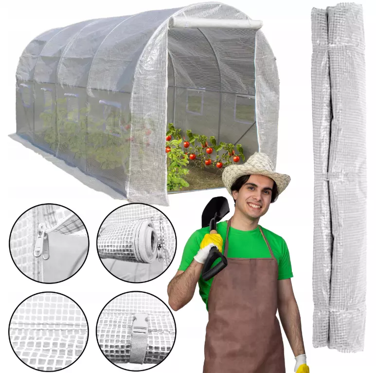 - Міцна садова рама-тунель, стійка до будь-яких погодних умов. Каркас із оцинкованих труб з профілями, оцинкованими з двох сторін, забезпечує максимальну міцність та захист від корозії.
