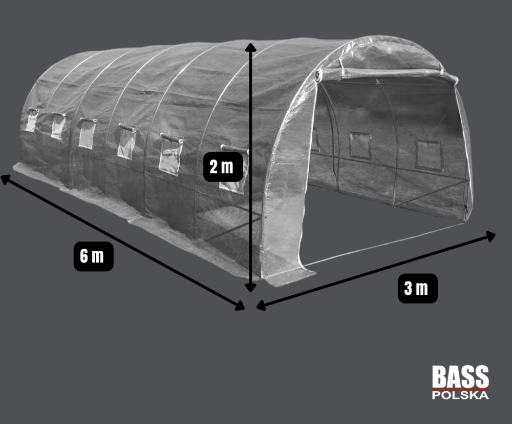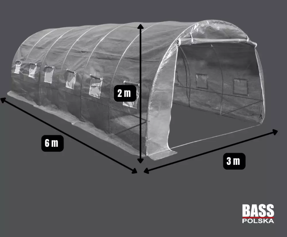 Садова теплиця з UV-12 плівкою 18 м2 (6х3х2м) BASS POLSKA, Сіра