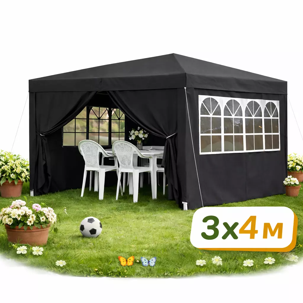 Садовий павільйон / торговий намет / альтанка Gordon (3×4х2,5 м) 4 стіни, з вікнами та захистом UV 50+ (Графітовий)