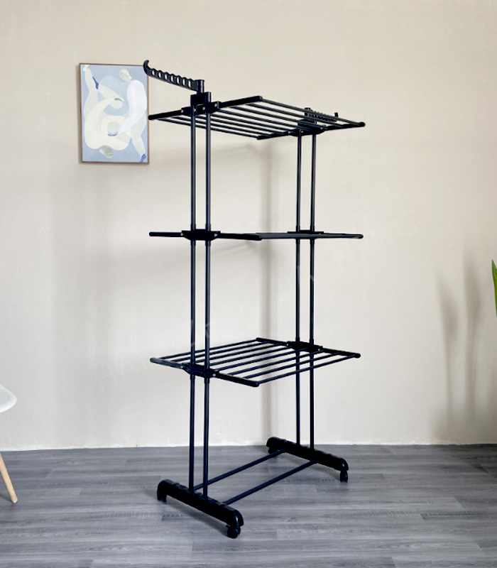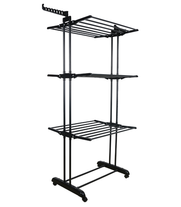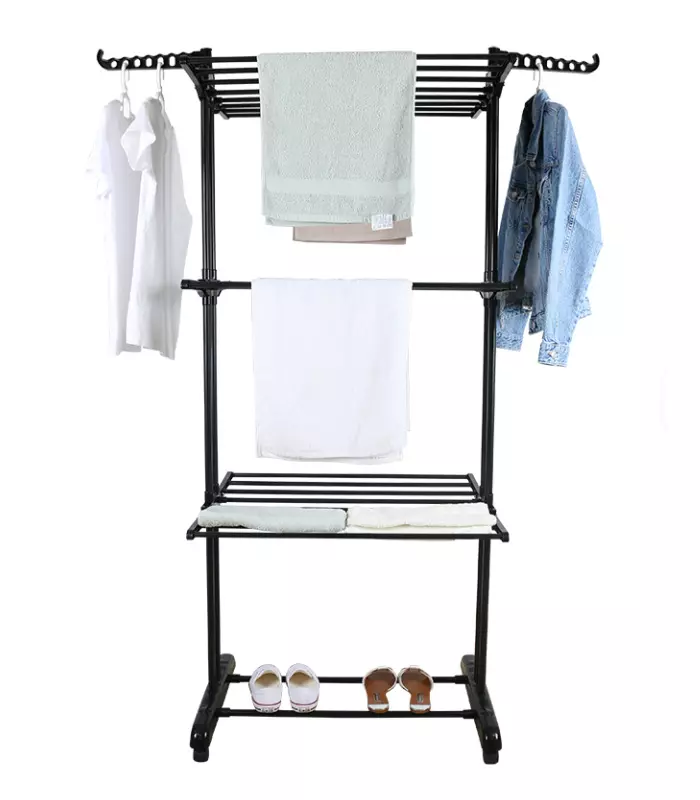 Складна вертикальна сушарка для білизни (72 × 64 × 170 см) 3 рівні + 1 для взуття, Чорна