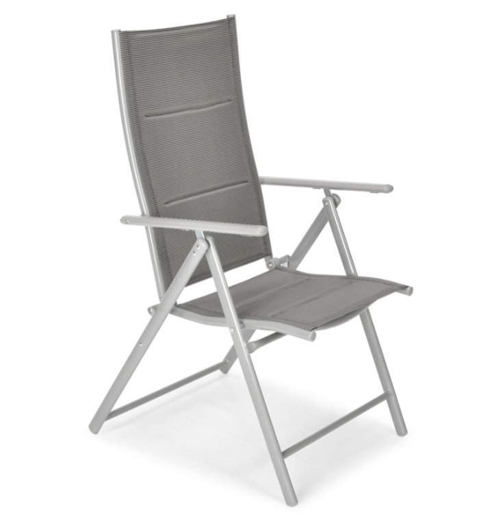 Складний садовий стілець MODENA eDomator алюмінієвий з регулюванням спинки, Срібний (Польща)
