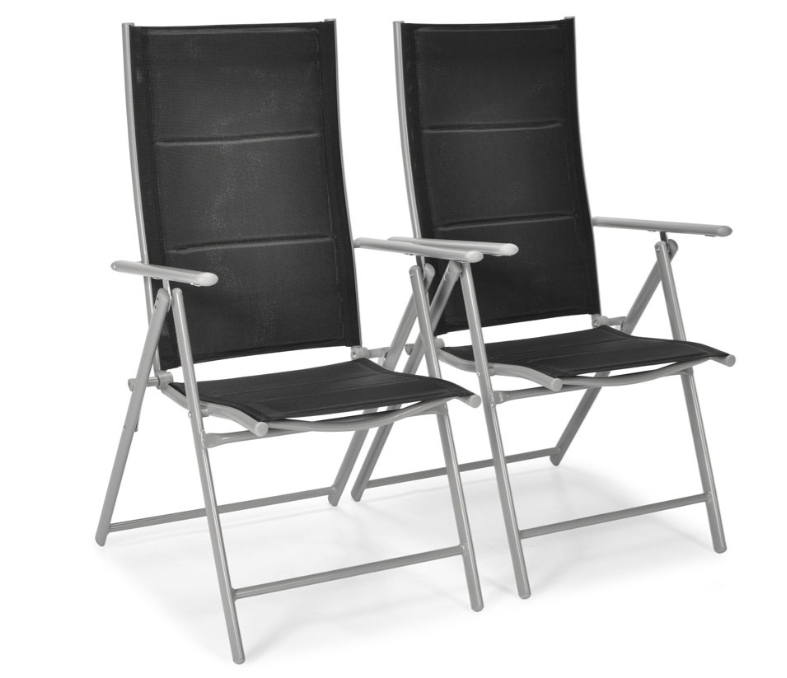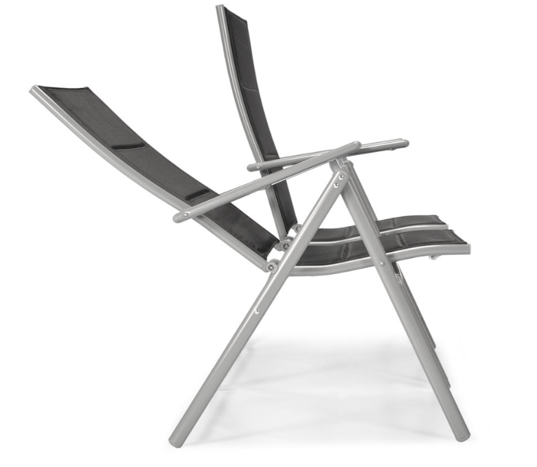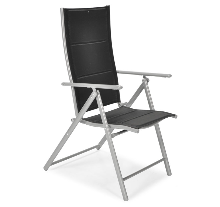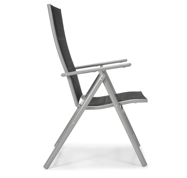Складний садовий стілець MODENA eDomator алюмінієвий з регулюванням спинки, Срібно-чорний (Польща)