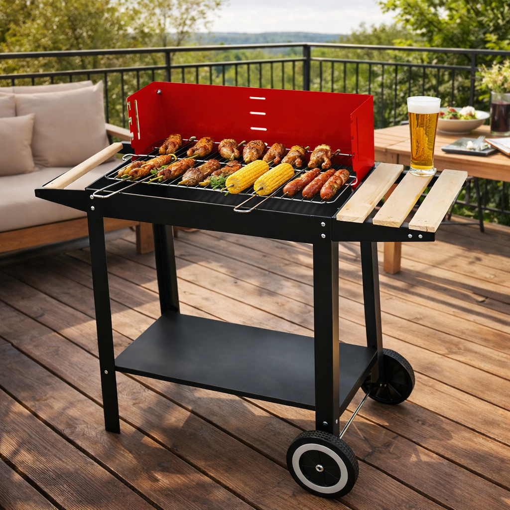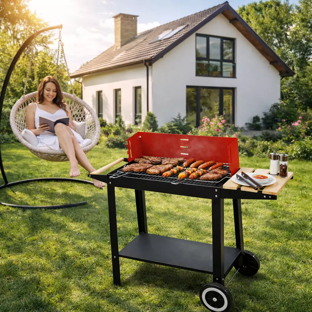 Практичний і функціональний вугільний гриль — ідеальне рішення для літніх зустрічей у саду, на дачі або терасі. Завдяки стабільній конструкції та великій поверхні для приготування, він чудово підходить для сімейних обідів і відпочинку з друзями. Класичний дизайн у поєднанні з сучасними деталями забезпечує зручність у використанні та привабливий вигляд.