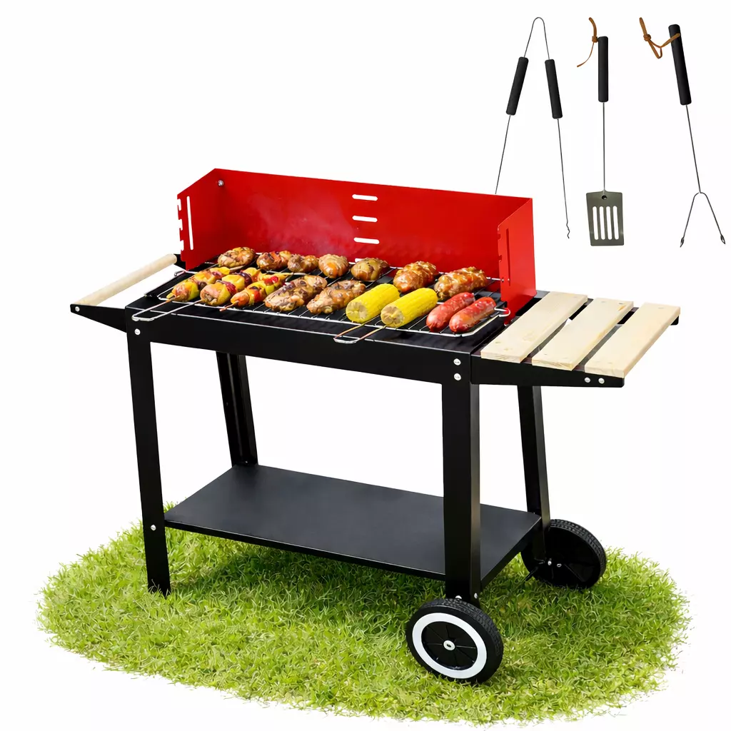 Завдяки транспортним колесам гриль легко переміщувати, а нижня полиця забезпечує додаткове місце для вугілля або необхідних речей.