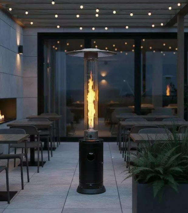 Вуличний газовий обігрівач — ідеальне рішення для тих, хто хоче створити затишну атмосферу на терасі, в саду, біля будинку чи у відкритих гастрономічних зонах. Висока сучасна конструкція з видимим полум’ям дарує неповторний візуальний ефект, притягує увагу та забезпечує комфорт перебування на свіжому повітрі навіть у прохолодні вечори. Прозора скляна труба підкреслює природний вогонь, додаючи пристрою елегантності та формуючи теплу, приємну й атмосферну зону.
